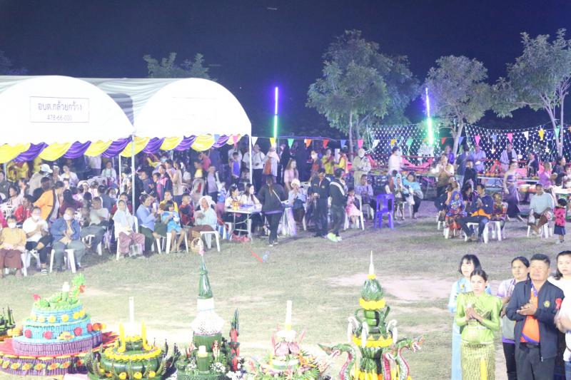 รายละเอียด : กิจกรรมประเพณีวันลอยกระทง ประจำปี 2566 จัดขึ้นในวันจันทร์ที่ 27 พฤศจิกายน 2566 ณ ลานนวัตวิถีชุมชนบ้านโนนสำโรง ลำน้ำห้วยวะ หมู่ที่ 7 ตำบลกล้วยกว้าง อำเภอห้วยทับทัน จังหวัดศรีสะเกษ